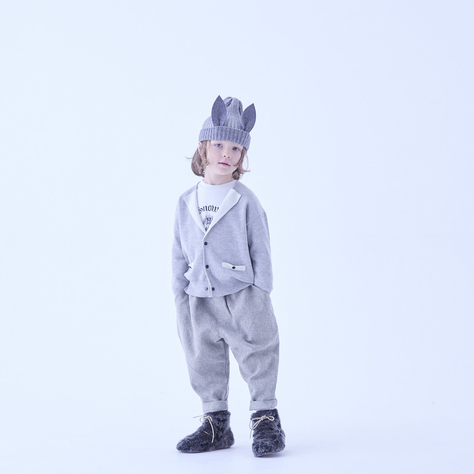 白をメインカラーにしたユキウサギのような冬コーディネートが楽しめます。