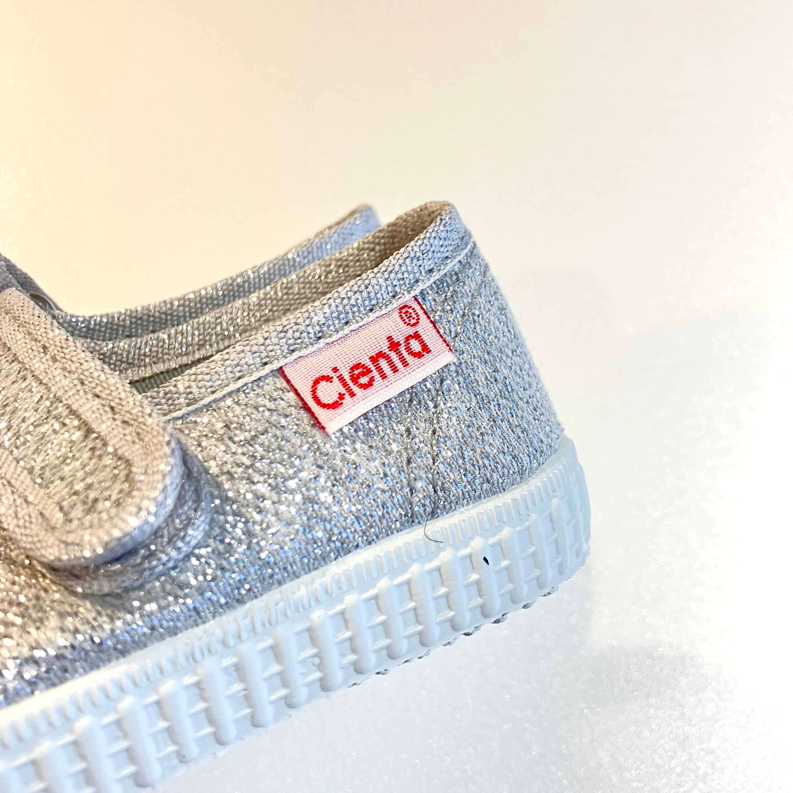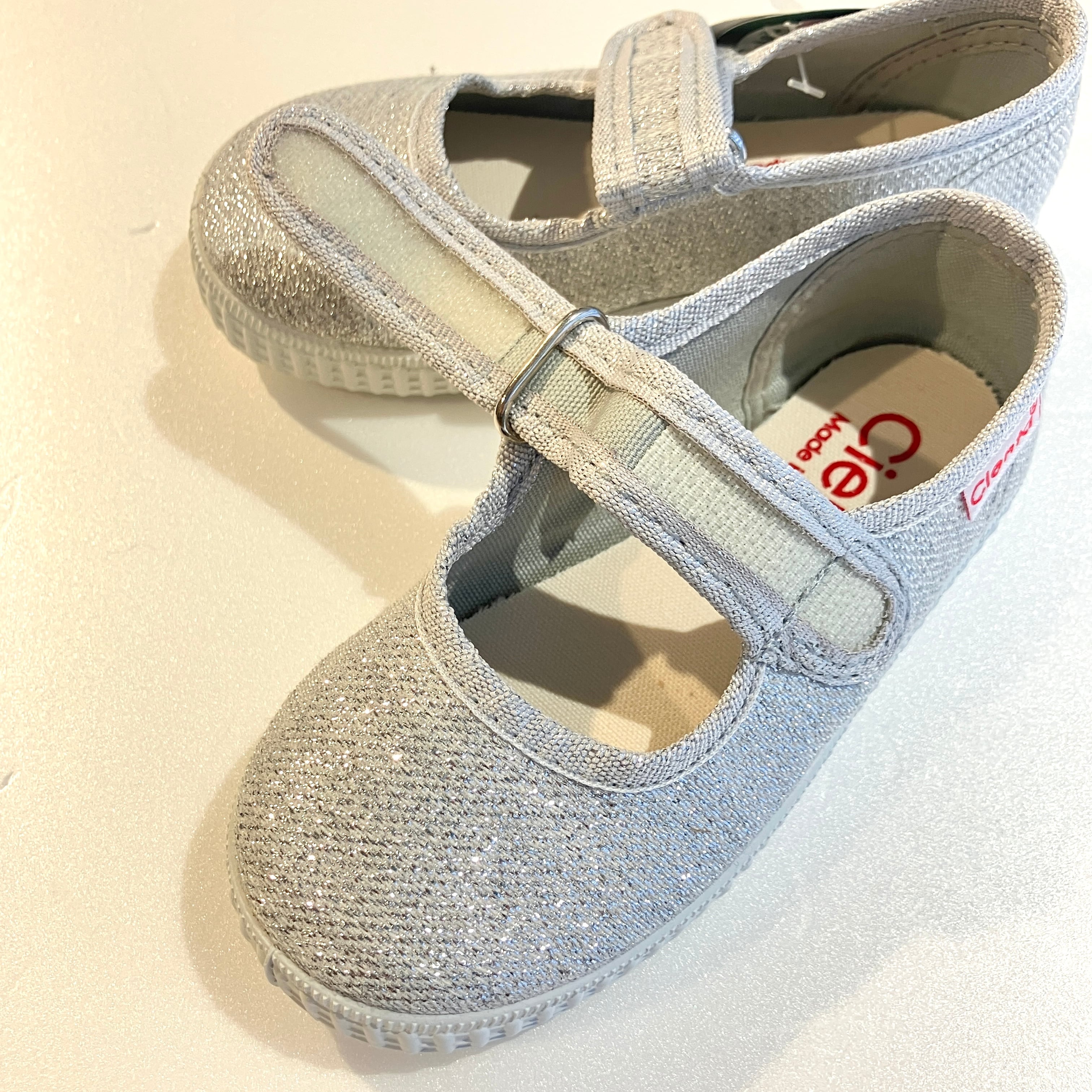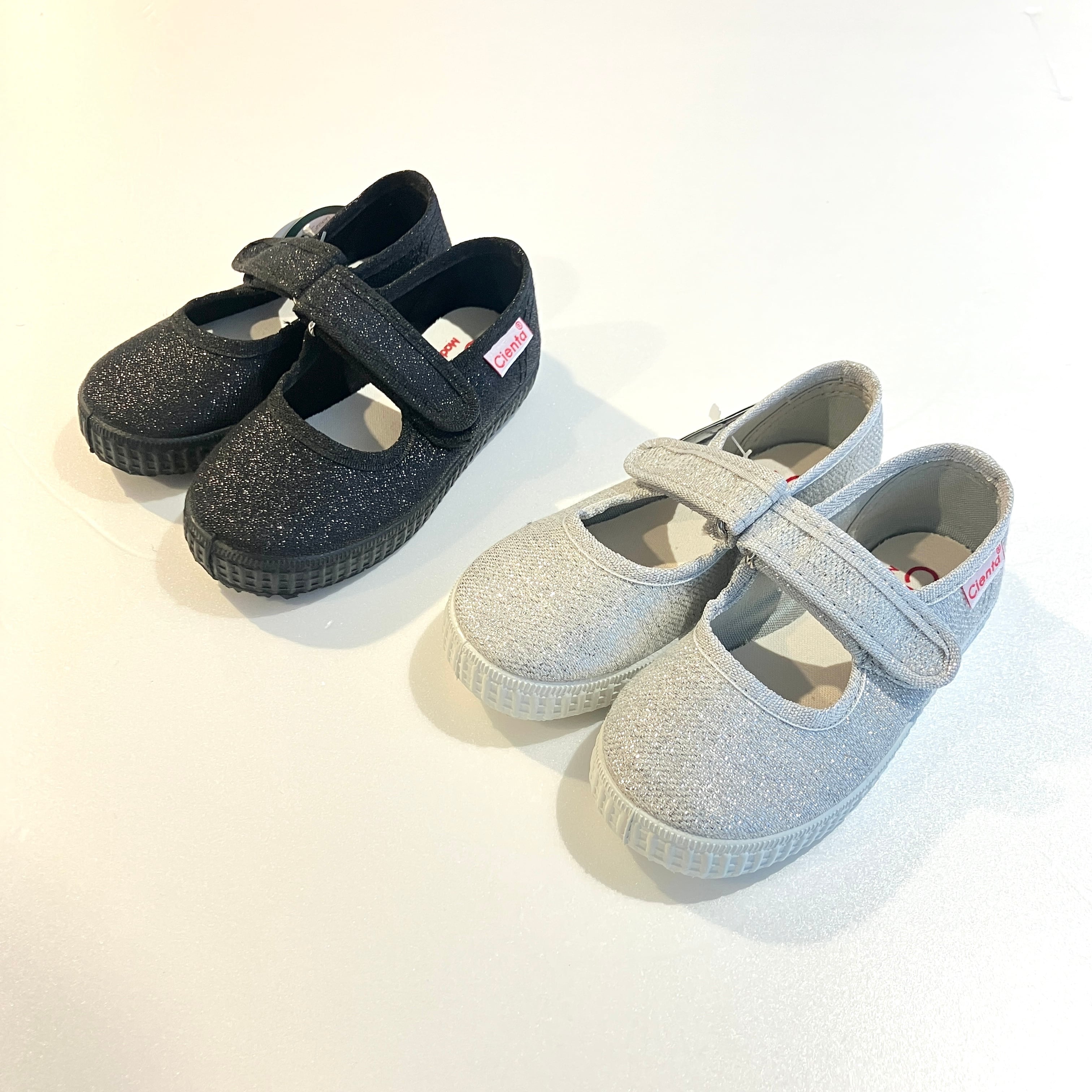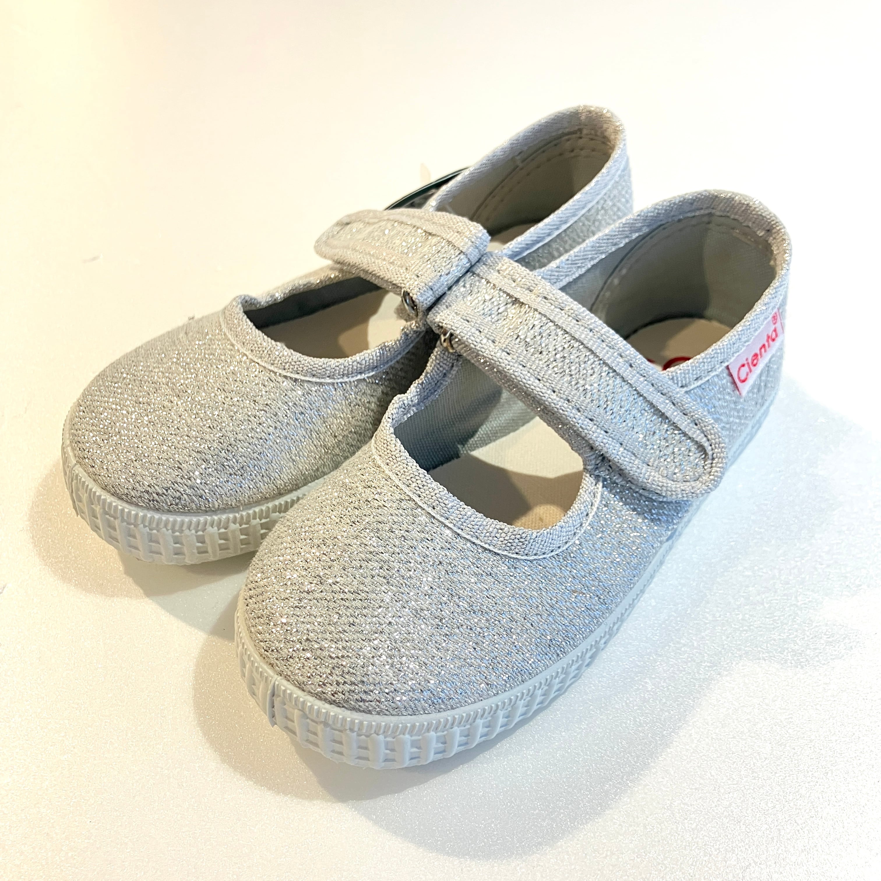 【26SS】cienta(シエンタ)グリッターワンストラップシューズ PLATA SILVER(12.5/13/14/14.5/15/16/16.5/17/18/19/20/20.5/21cm)靴 シューズ シルバー