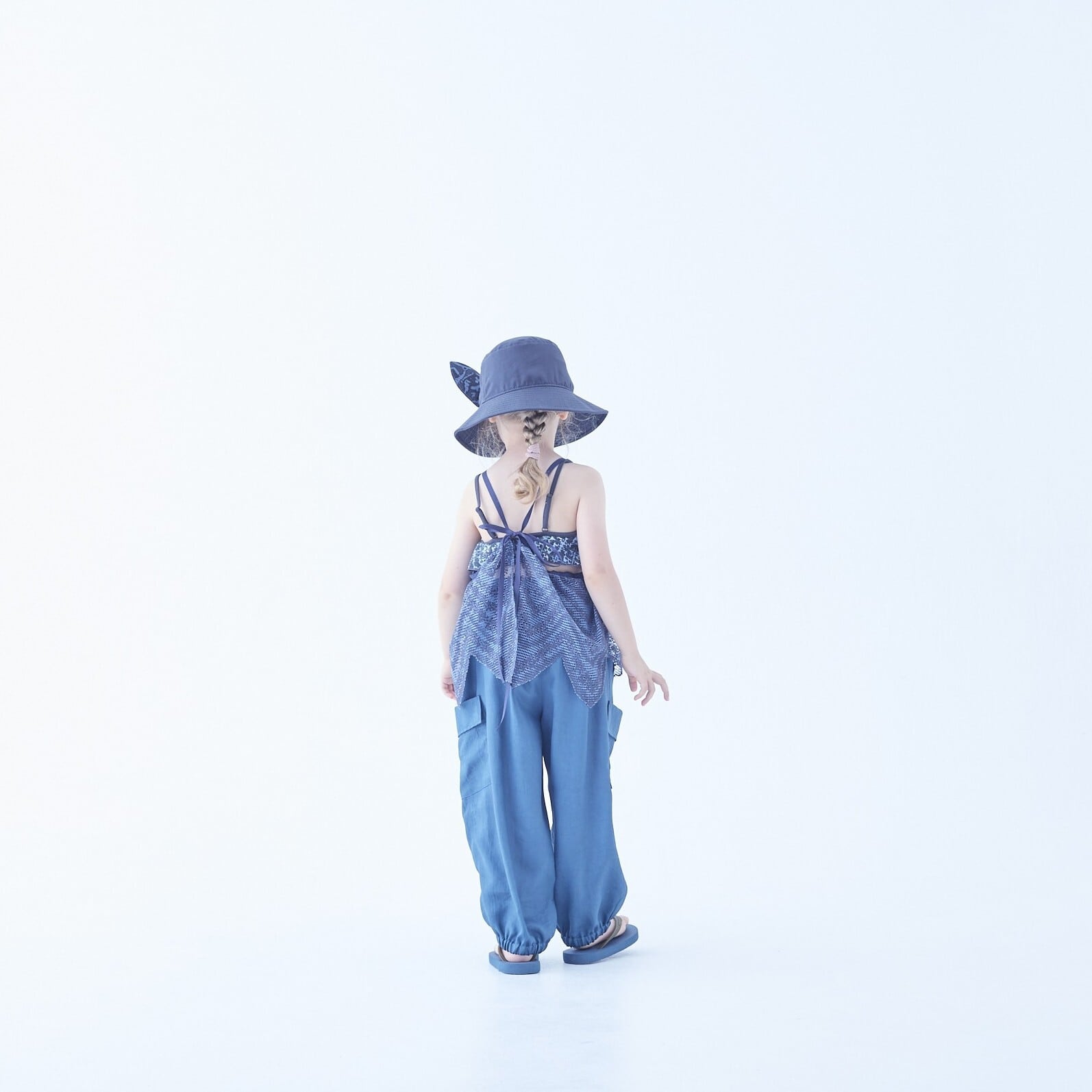 細い肩紐は背中のリボン結びで長さ調節可能