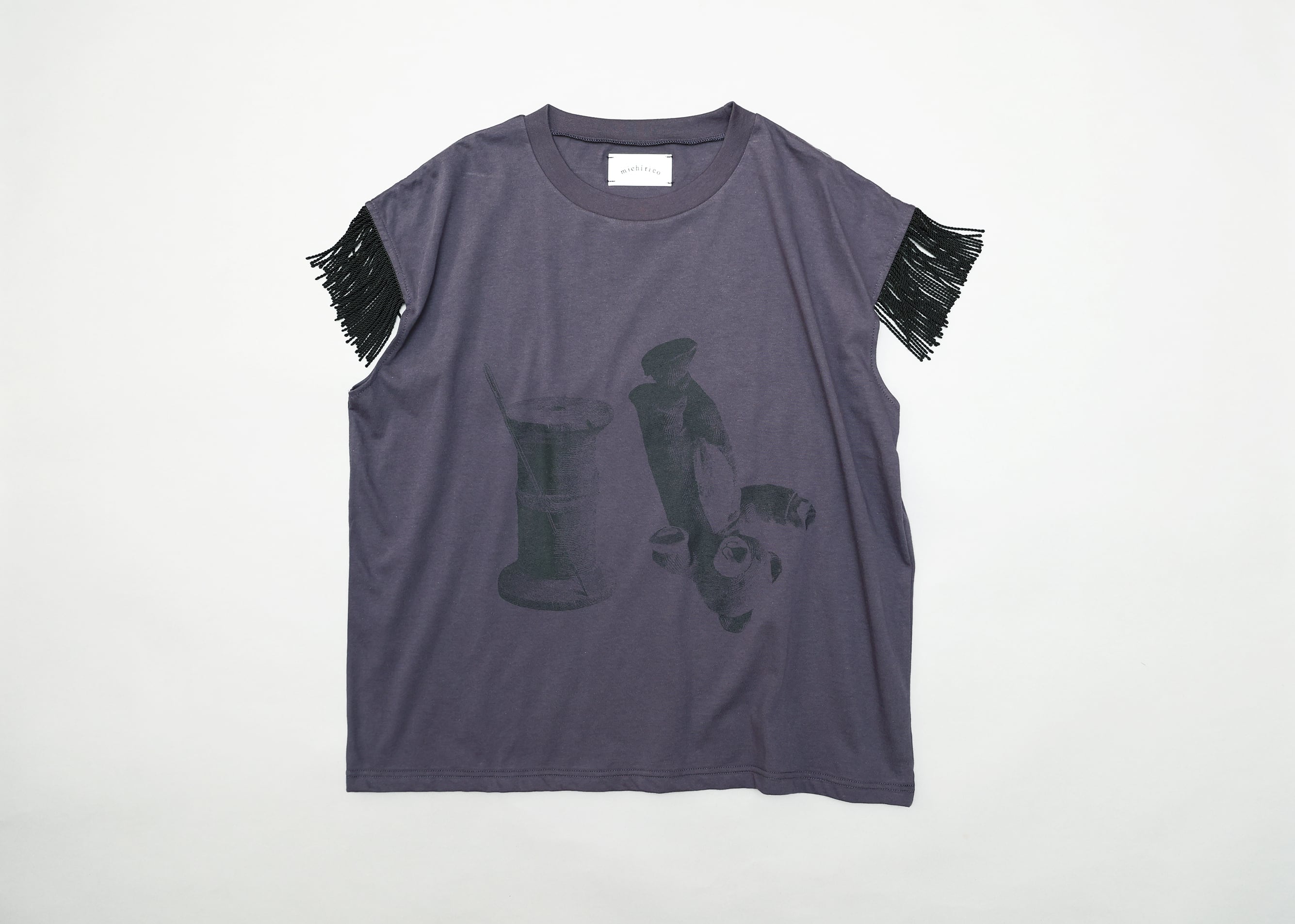 【26SS】michirico(ミチリコ)Thread&Bear fringe T ダークパープル(L/XL)Tシャツ フリンジ くま