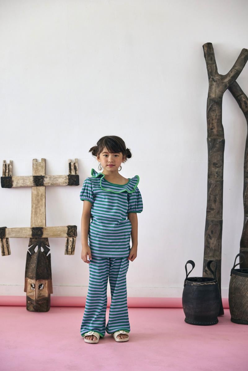 【26SS】KOQUELIKO(コキュリコ)Misha tops green border(S/M/L)Tシャツ グリーン ボーダー