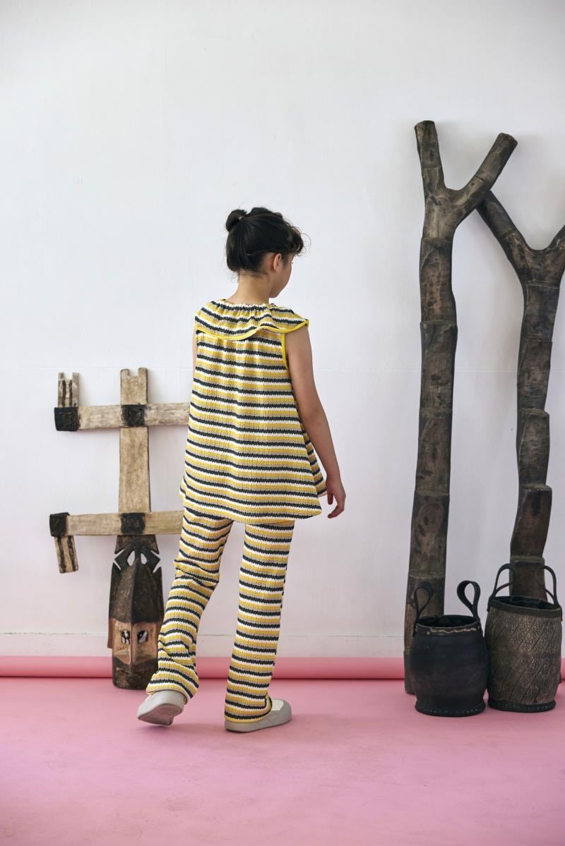 【26SS】KOQUELIKO(コキュリコ)Hinata tops yellow border(S/M/L)ノースリーブ ワンピース トップス イエロー ボーダー