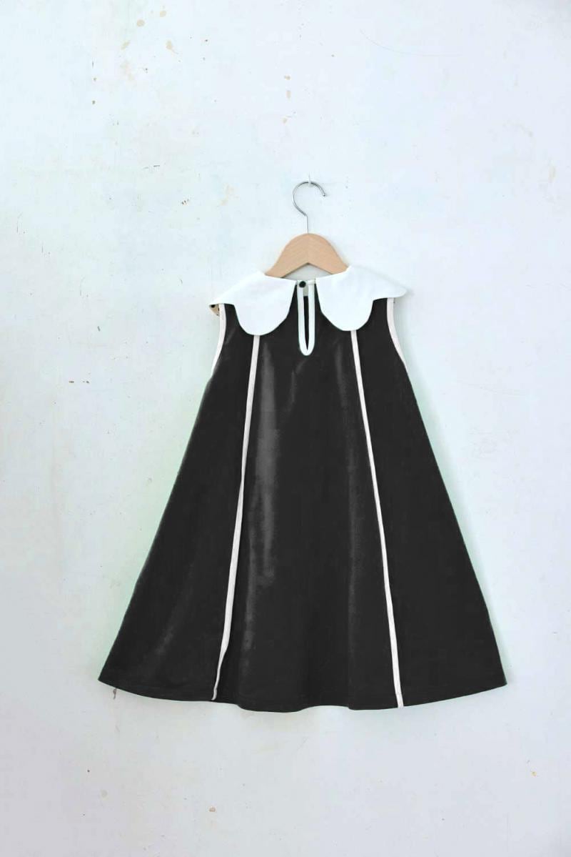 たっぷりフレアが入ったAラインのシルエットに花びらの形をした襟