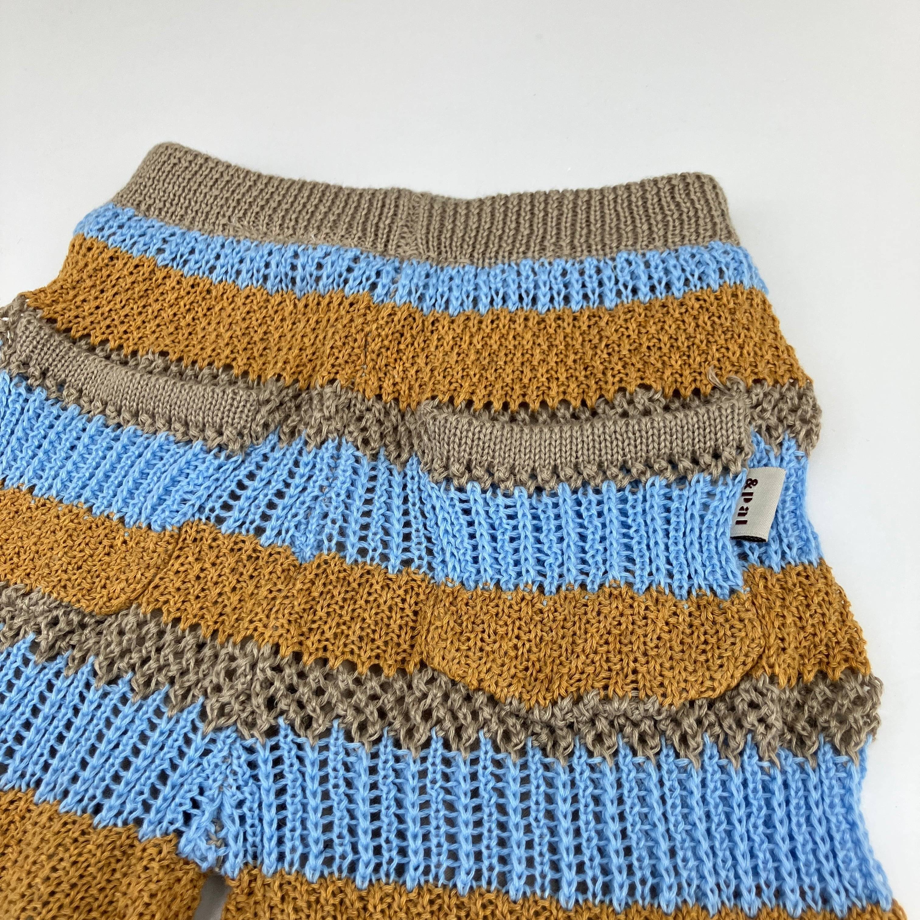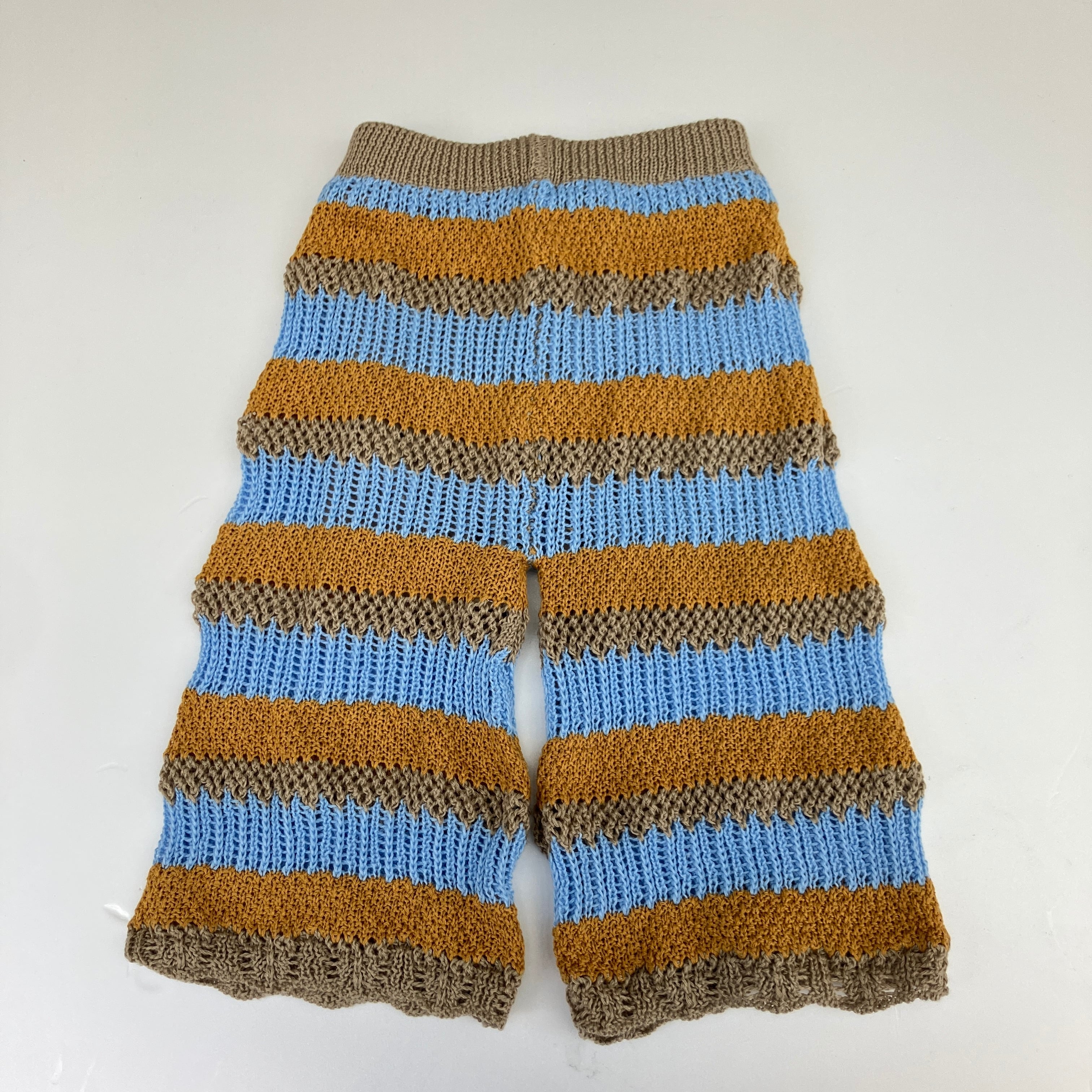 【26SS】&PAL(アンドパル)ボーダーパンツ サックス(80/90/100/110/120)パンツ ボーダー 編みパンツ