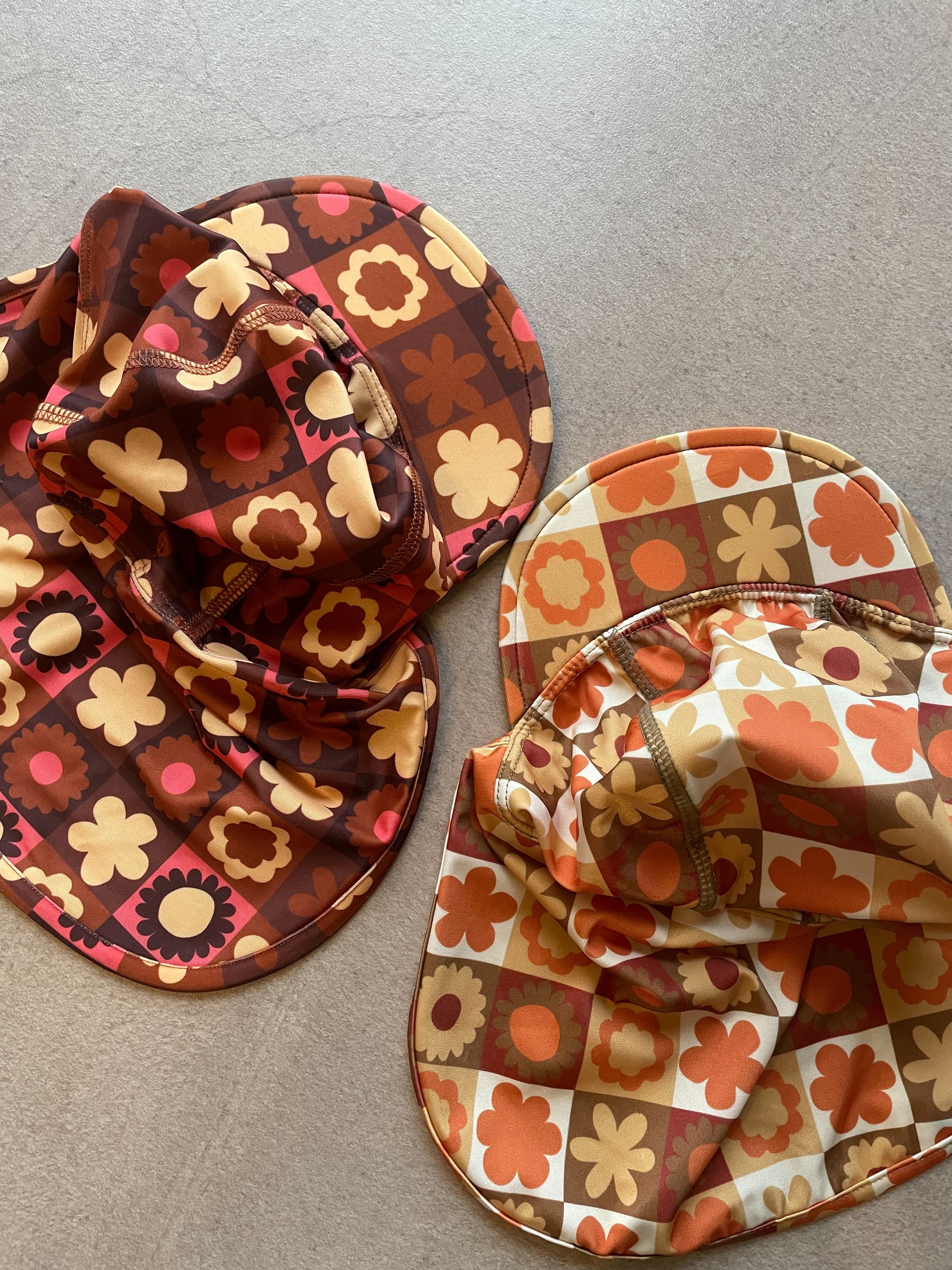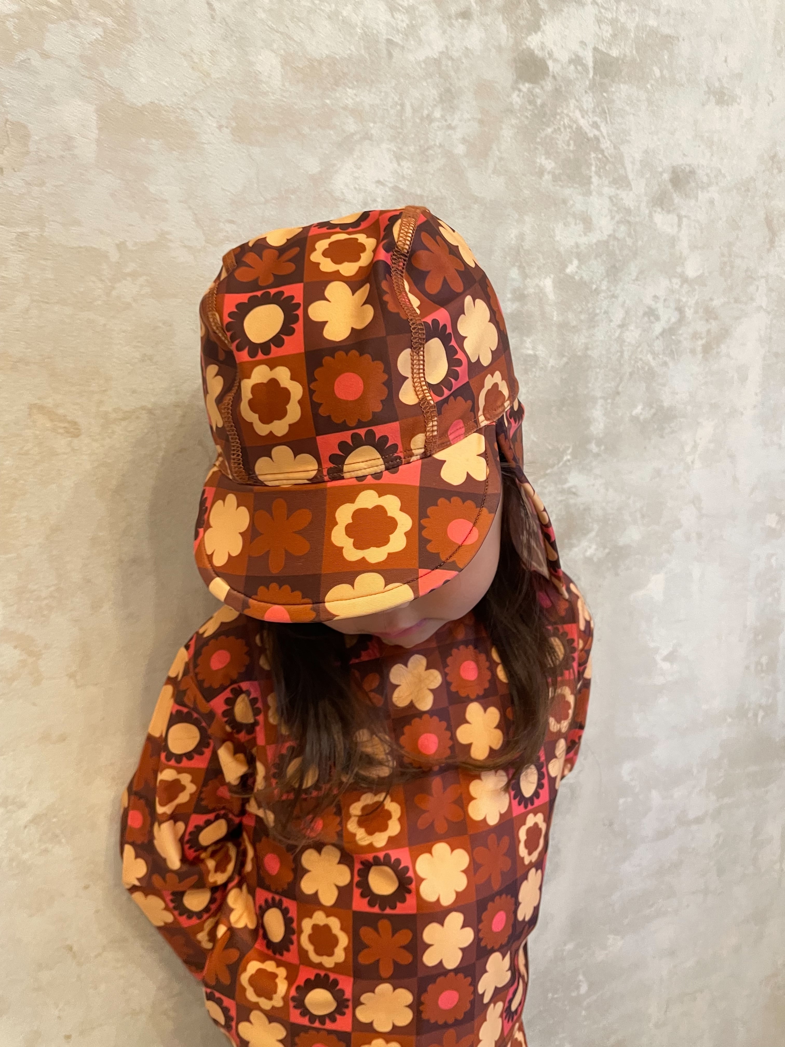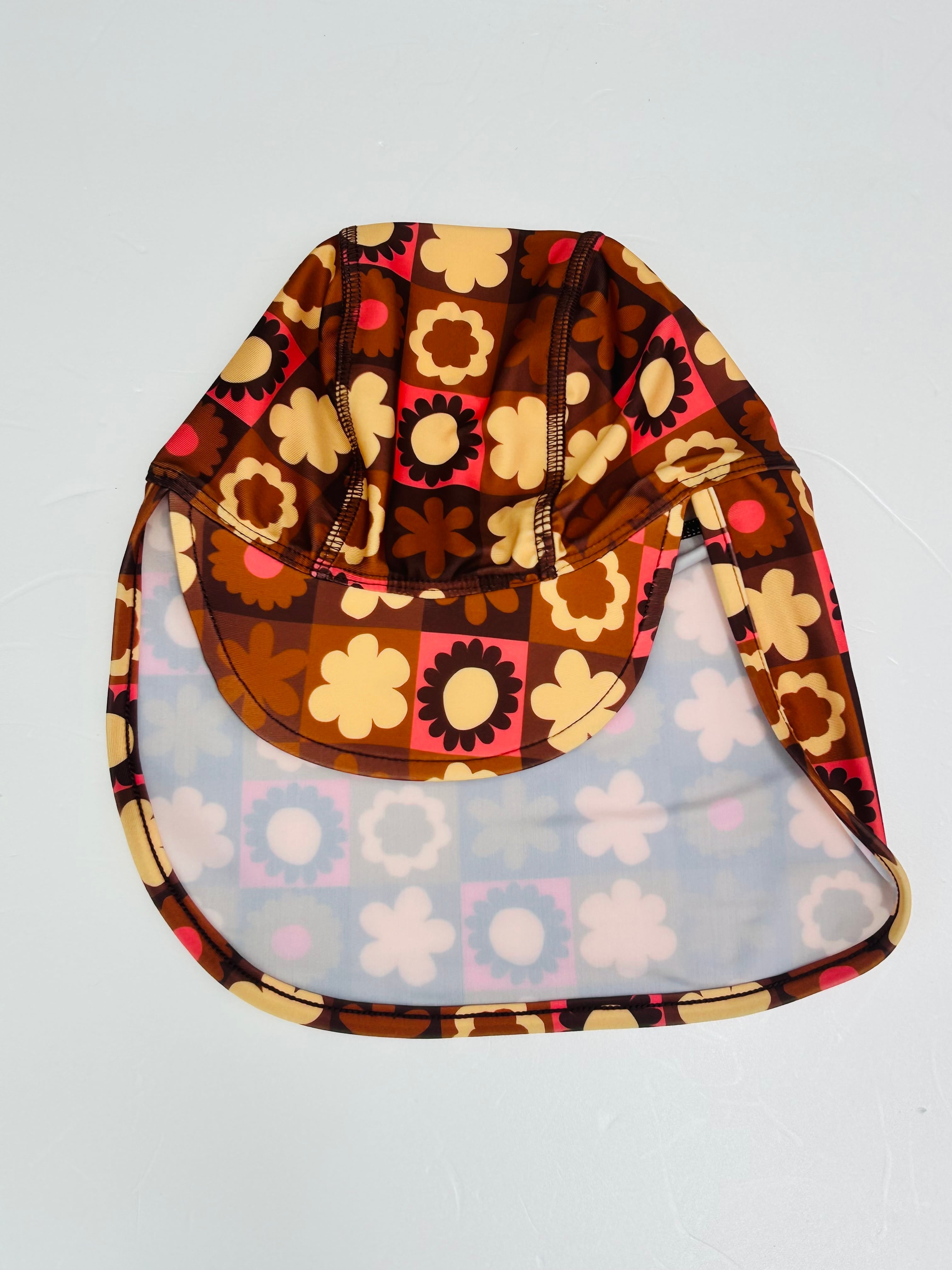 商品名:レトロ花柄スイムキャップ ブラウン